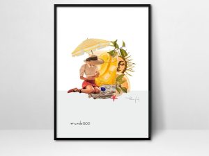 Collage "Verano en la piscina". Pertenece a la colección comida. Este collage capta la esencia de un pueblo de pescadores con gran historia arqueológica y sus características casas de colores.…